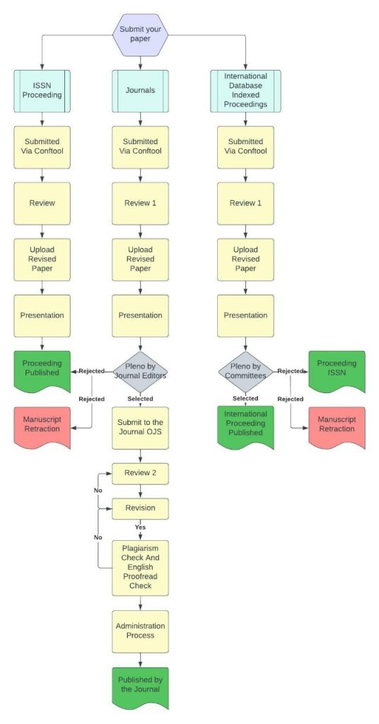 2. All manuscripts submitted to this conference must follow focus and scope, and author guidelines for the publication. The submitted manuscripts must address scientific merit or novelty appropriate to the focus and scope. All manuscripts must be free from plagiarism contents. All authors are suggested to use plagiarism detection software to do the similarity checking. Editors will check the each manuscripts’ similarity rate using the Turnitin software.